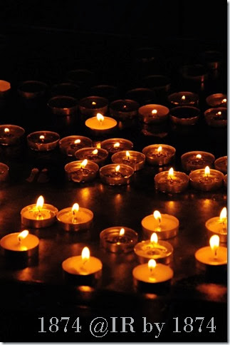 室內近祭台處比較暗, 只有燭光較耀眼。